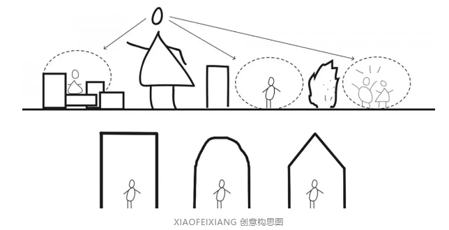 大小錯落,不同尺寸的房子造型門洞有序分布,可以讓小孩子和大人各自找到適合自己的高度,與空間自由互動。
