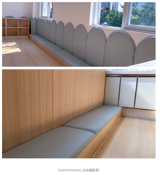 墻面符合孩子高度的地方,采用亞克力板,設計師希望每一間課室均以小朋友自己內心的想法去進行定制,不局限空間氛圍,當步入每一間課室的時候,小花小草、稚嫩涂鴉,都是屬于他們自己的世界。