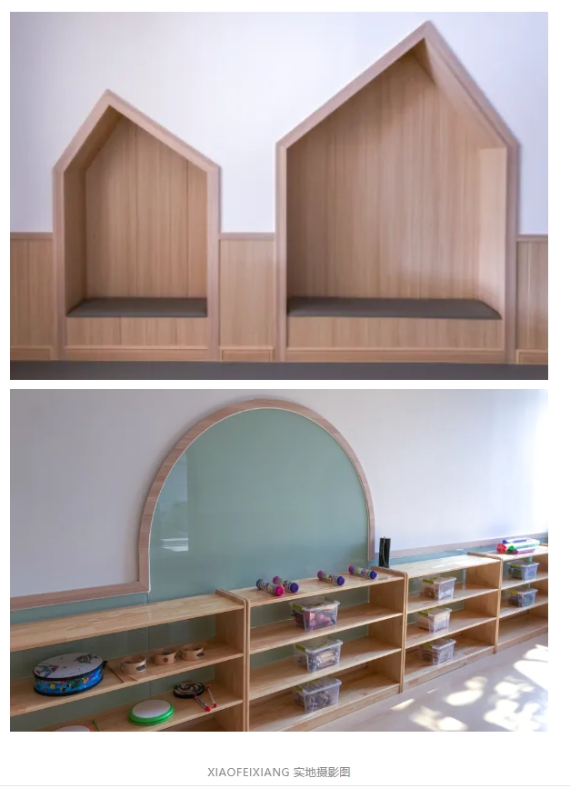在改造的過程中,設計師利用建筑原有梁和空間原有凹位,合理設計,保證高度足夠,根據不同實地空間,充分利用,因地制宜。巧妙地剖出多種功能區域,為孩子打造一個安全、健康、充滿關懷且富有童趣的教育空間。