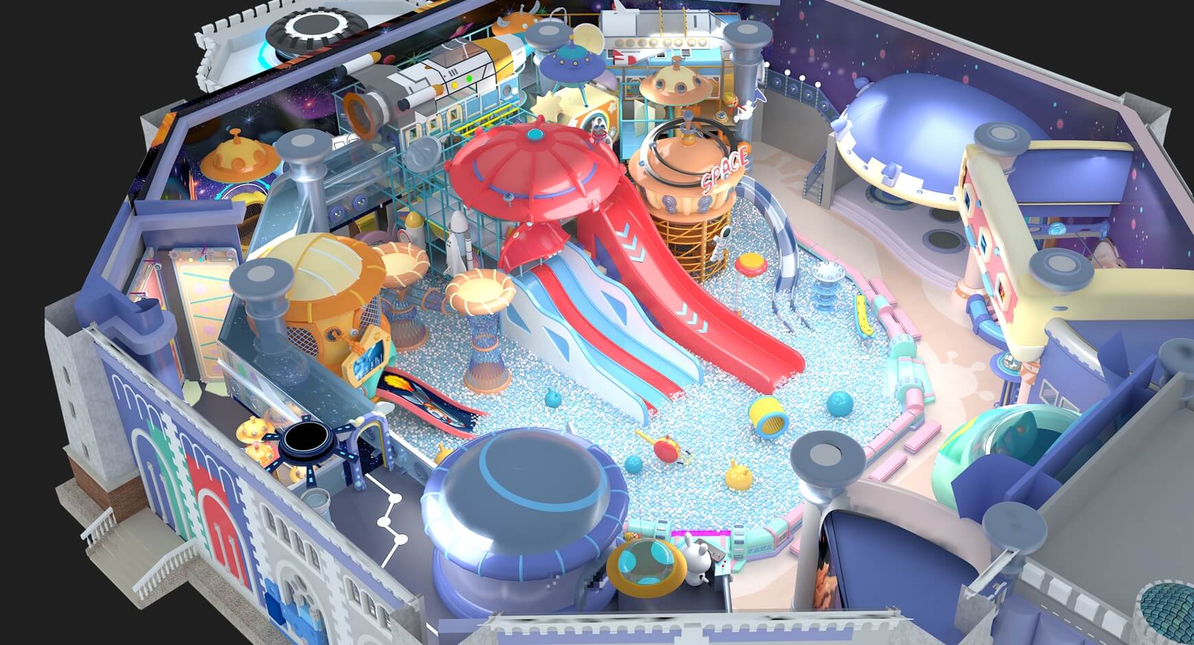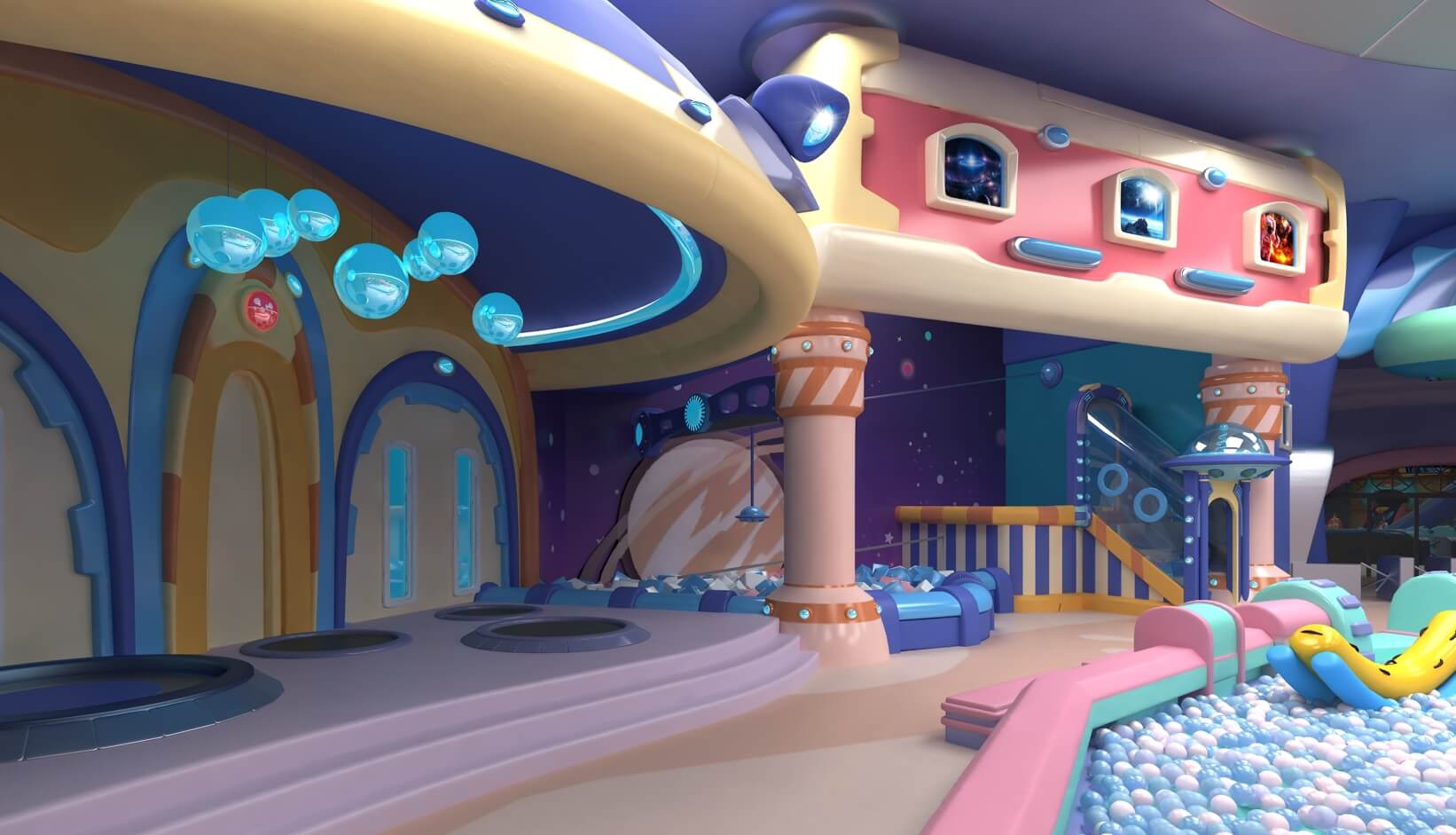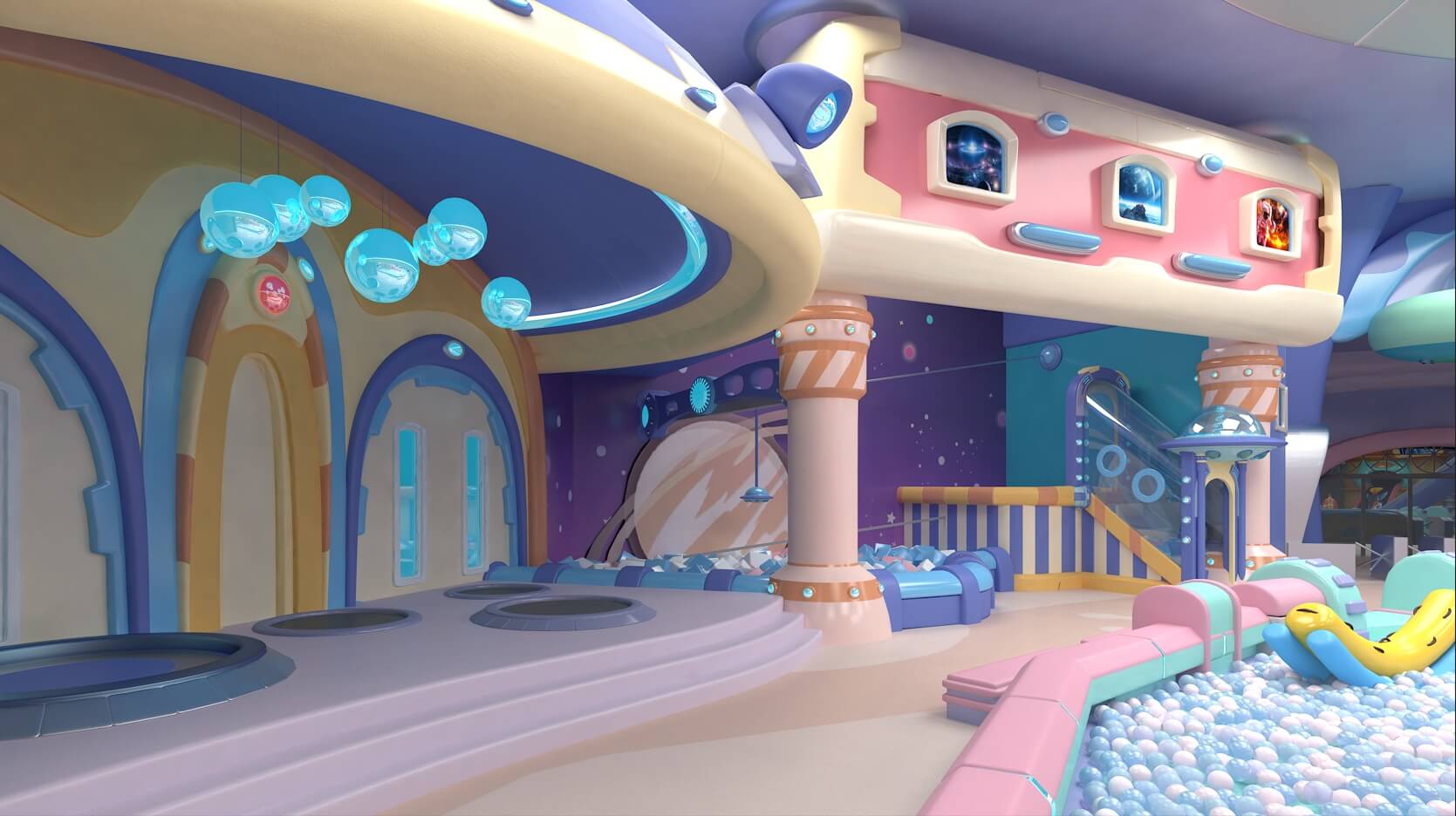 設計理念:在這里,孩子的太空夢想觸手可及,樂園以太空、宇宙、星空等元素展開設計,打造了一個未來、夢幻,有趣的冒險空間。未來的材質肌理與高飽和度的色彩碰撞結合弱化了場景的冰冷感,滑梯組合、穿越框架闖關組合的層層障礙,孩子們可以在迷宮中穿梭探索,鍛煉自己的勇氣和智慧。