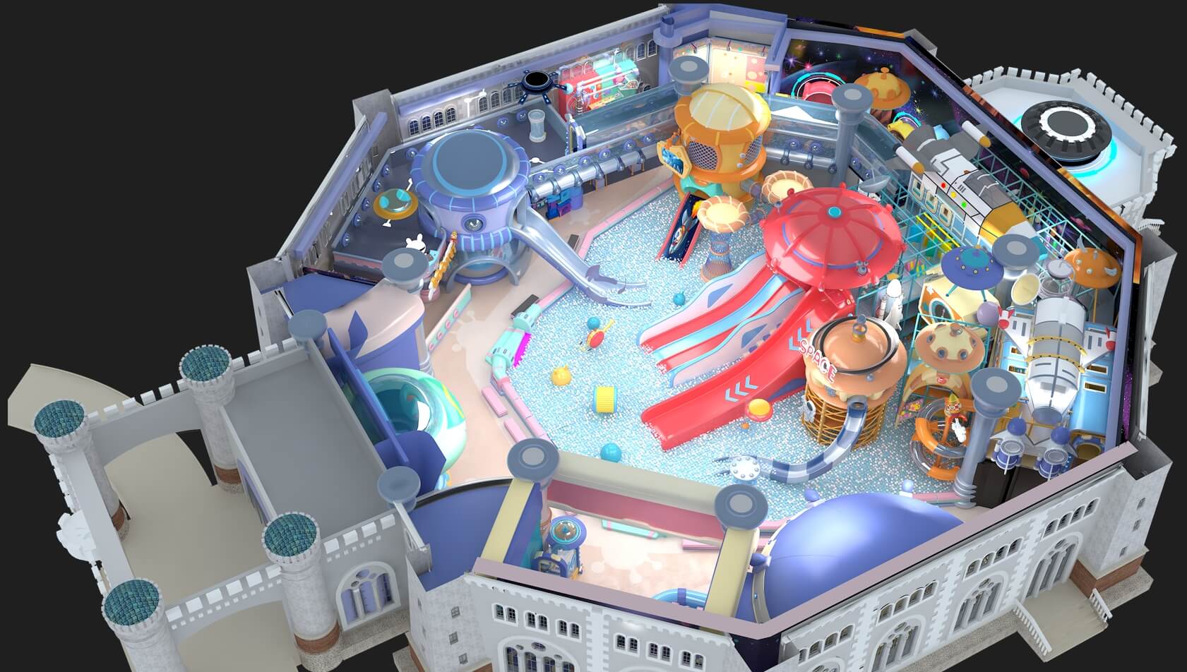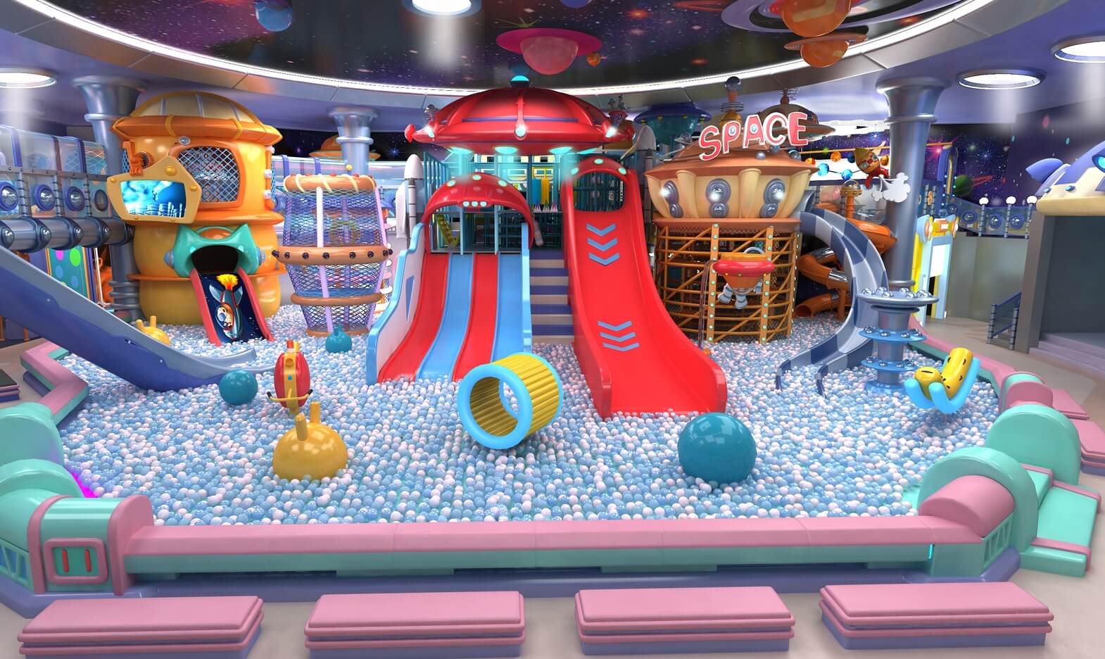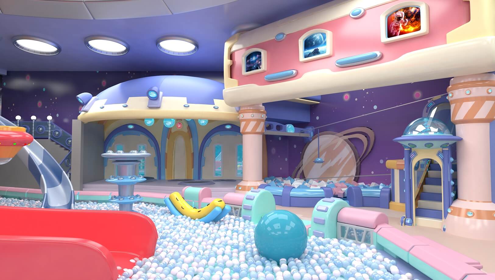 設計理念:在這里,孩子的太空夢想觸手可及,樂園以太空、宇宙、星空等元素展開設計,打造了一個未來、夢幻,有趣的冒險空間。未來的材質肌理與高飽和度的色彩碰撞結合弱化了場景的冰冷感,滑梯組合、穿越框架闖關組合的層層障礙,孩子們可以在迷宮中穿梭探索,鍛煉自己的勇氣和智慧。