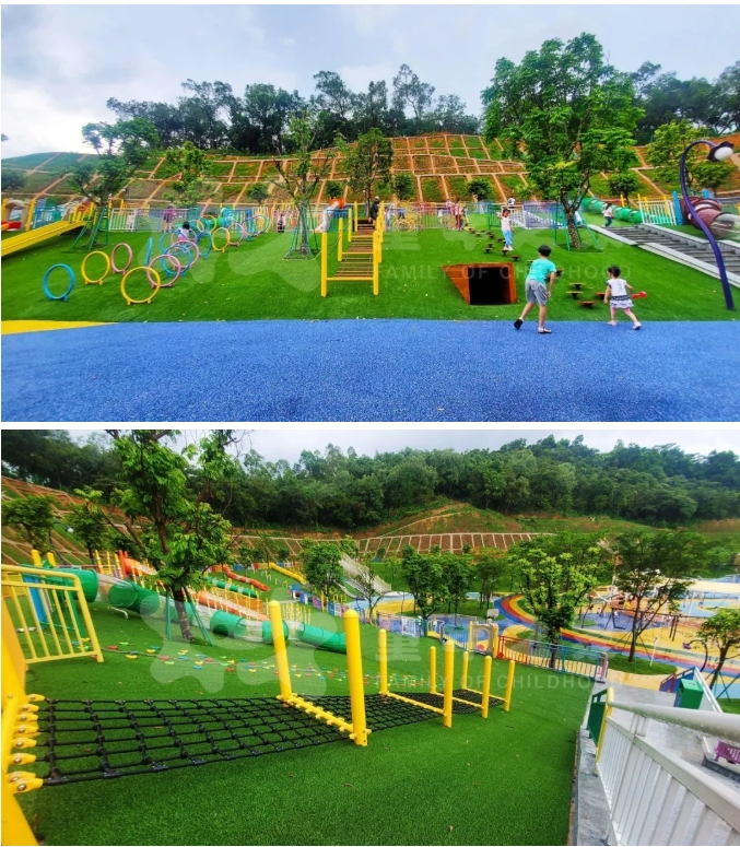 童年之家集團就地形、借景觀、引設備......而后,便有了自然的坡,自然的樹,有趣的設備,一切便開始自然而然的形成。