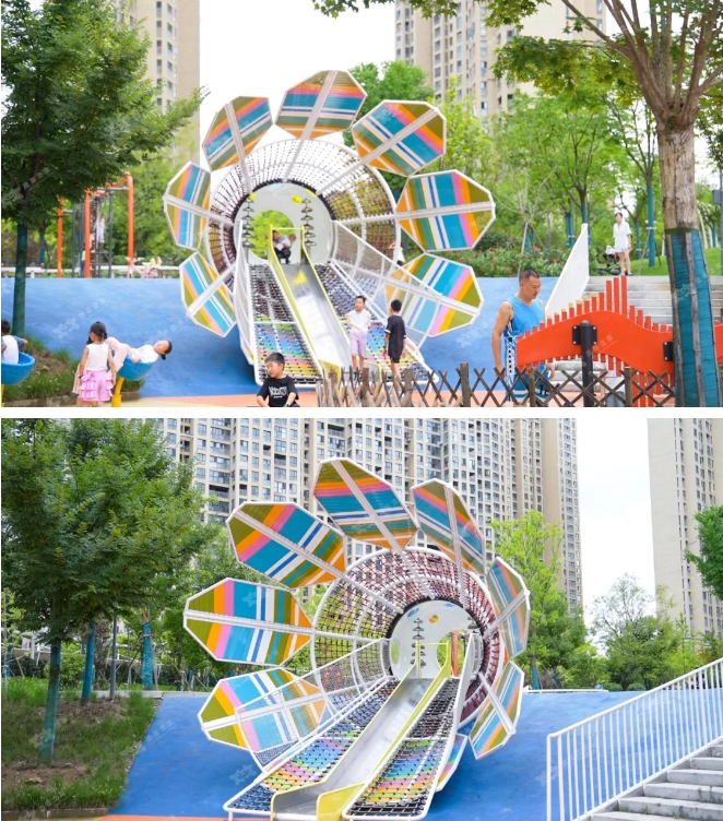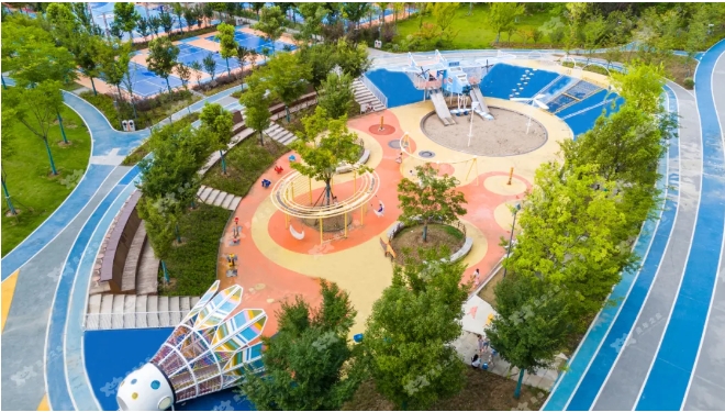 選擇明亮的、飽和度高的顏色來進行場地鋪裝,以更具趣味性的兒童友好視角吸引孩子的興趣,給孩子帶來挑戰刺激的同時提高視覺藝術的豐富度。