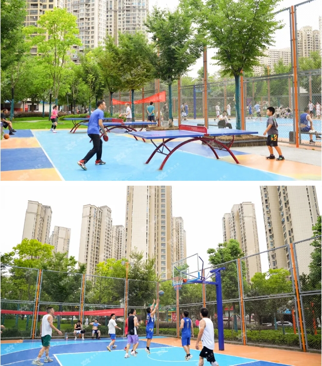 樂園中的青少年板塊強化了公園戶外運動的全域概念,籃球、乒乓球、羽毛球等多種運動場地的組合,可激活居民間以運動為主的社交,充分提升公園參與性、實用性。