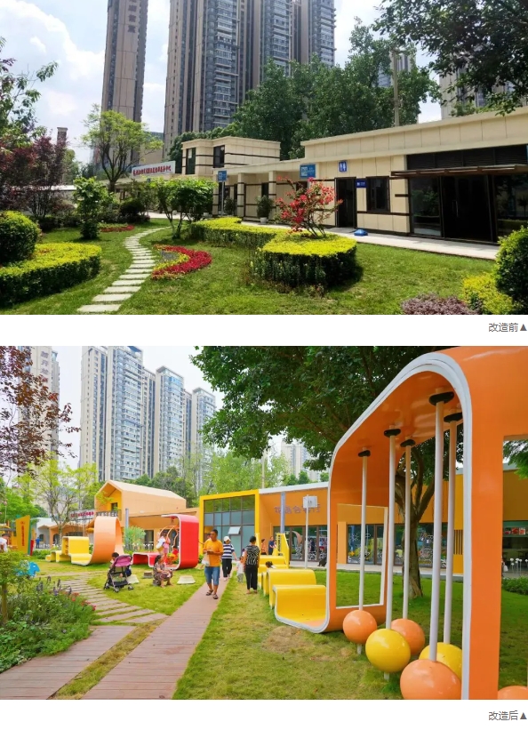 金牛區花照壁社區打造全齡友好的公共空間是對現有社區的改造,設計團隊需要從交通、節點、功能等多方面考察社區的現狀。針對0-3歲孩子、3-6歲、6-12歲兒童分齡作為標準,結合心理以及行為上的分析,對原有場地進行了改造,將兒童娛樂設施和公共聚會空間整合到一起,打造出極具創意的空間。