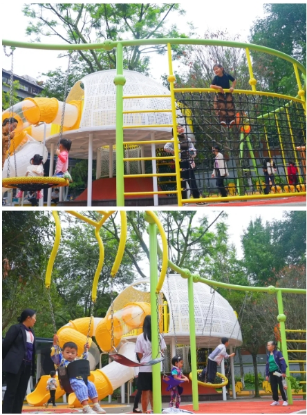 其中的環形爬網在兒童游玩過程中激發孩子的身體協調能力。