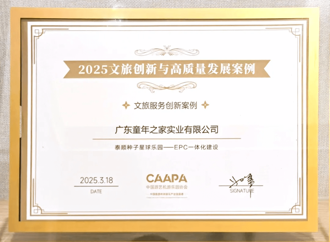 年會上,備受矚目的“2025文旅創新與高質量發展案例”獎項重磅揭曉。廣東童年之家實業有限公司憑借泰順種子星球樂園EPC一體化建設項目,榮獲“文旅服務創新案例”獎項!