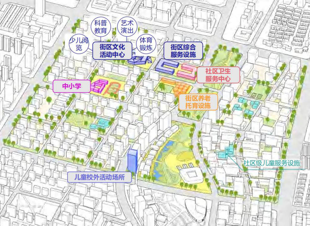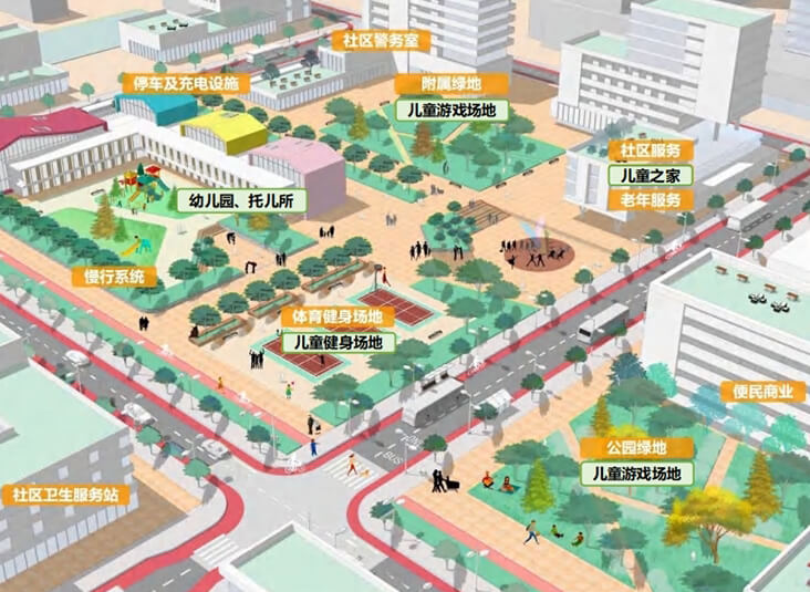 以 “15 分鐘生活圈” 為半徑,串聯社區服務設施,打造“親子互動 + 代際共享”的復合型空間。