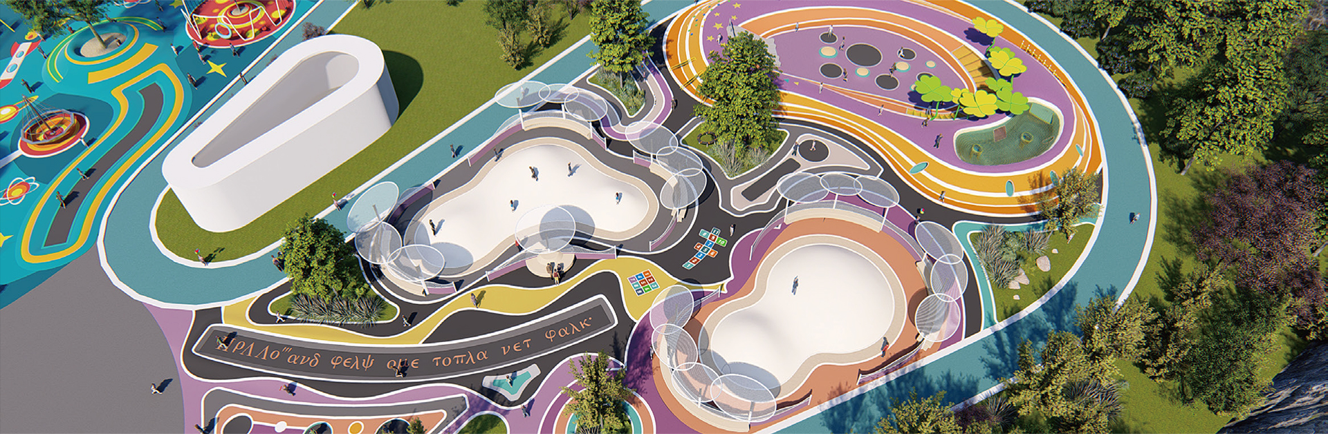 兒童與自然的關系為出發點,創造沉浸式自然氛圍來增強兒童的體驗感知,將自然元素與游樂設備結構相結合,選用充滿熱情與活力的橙色為主色調,引入木屋、樹葉松鼠等生態元素,整體風格明亮活潑,激發孩子的探索欲。
