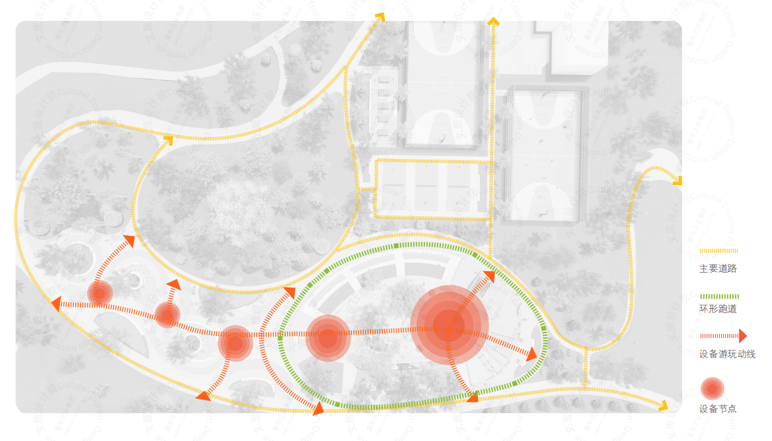 設計樂園的景觀環境,包括地形塑造、水系設計、植物配置、鋪裝設計等。